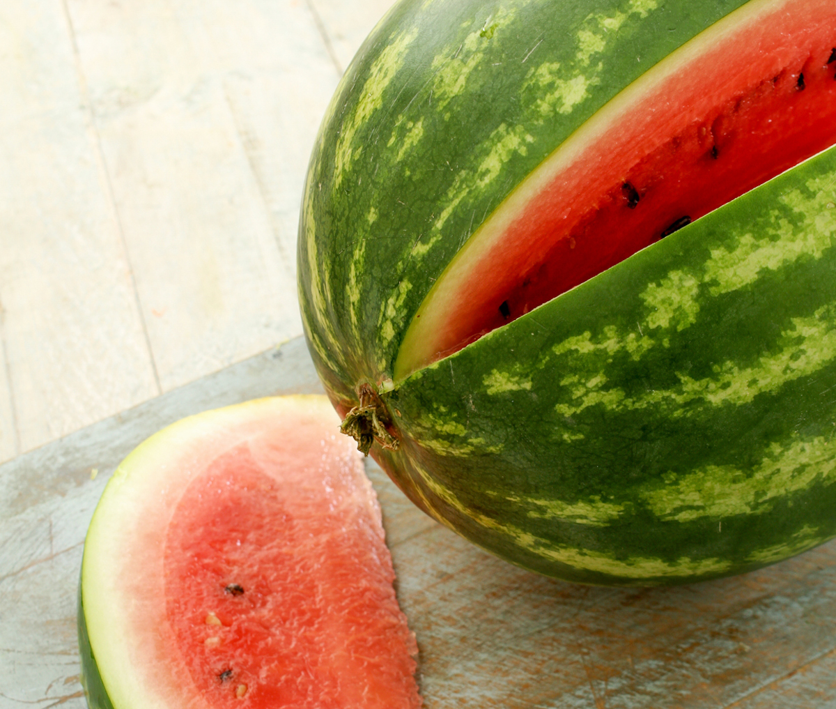 The main types of melon are honeydew melons, watermelons and cantaloupe. Honeydew melons have ribbed yellow skin with firm, pale green flesh and a honey like sweetness. Watermelons have crumbly deep pink flesh with a soft crunch and black seeds throughout. It has a refreshing sweetness and hint of bitterness. Cantaloupe have a rough scaly skin with a vibrant orange flesh. They are sweeter and more tender than Honeydew melons.